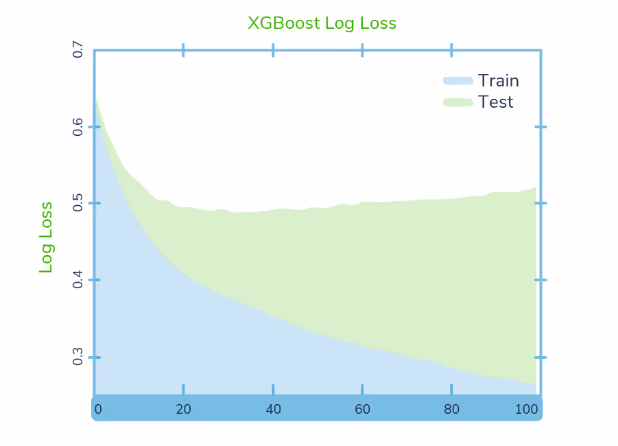 Recordemos nuestro objetivo: Que nos vaya bien en el 30% es decir, que el error sea el mínimo posible en Test, el desempeño en Train no es tan relevante. Observemos como el error de Train siempre baja, el algoritmo está programado para siempre disminuir el error de Train pero hay un punto en el que Test empieza a empeorar (pensemos en que nos dan un repaso de examen, si memorizamos cada detalle de este repaso puede que no nos vaya tan bien en el examen de verdad). A este fenómeno lo llamamos overfitting.